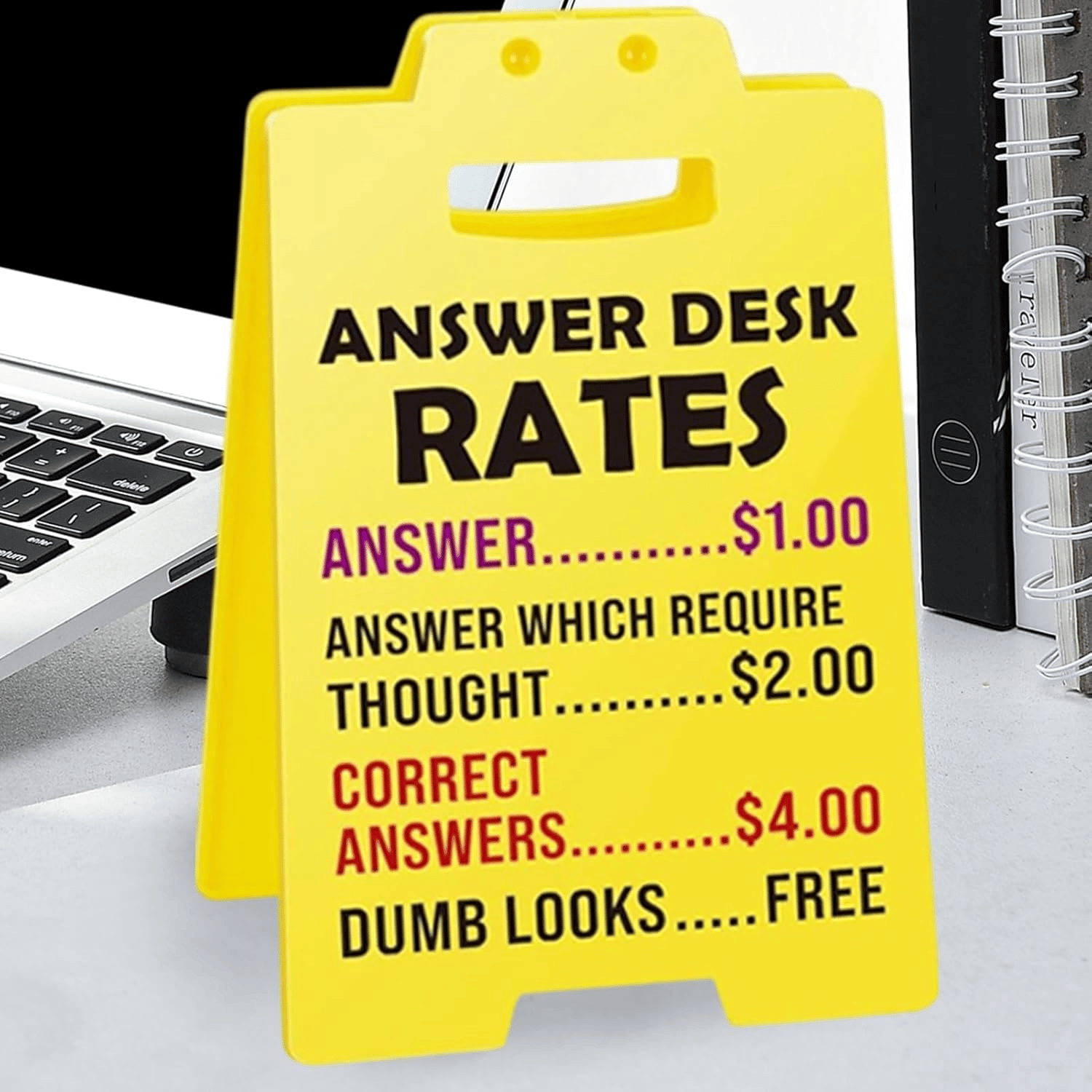 Funny Gift for Coworker: The βAnswer Desk Ratesβ desk sign and office decor humor are sure to add fun and laughter to any space! This funny office decor is the perfect humorous touch to your office.
